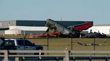 News Historic Military Planes Collide At Dallas Air Show As Crowd Looks On November 12, 2022 A Boeing B-17 Flying Fortress and a Bell P-63 Kingcobra slammed into one another midair.Read More